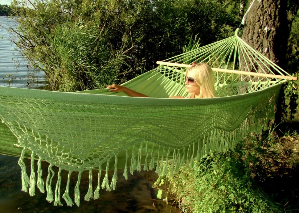 Цена указана за гамак без каркаса. Красивый большой гамак TULIP сделан вручную из высококачественного хлопка. Мягкая фактура материала прекрасно адаптируется к форме вашего тела. Полотно гамака украшено бахромой, сплетенной вручную из волокон настоящего бразильского ореха - дерева, растущего только на севере Бразилии, из бразильского ореха делаются и стропы - петли. Для поперечных перекладин используется древесина "Массарандуба", продукция заверена "SmartWood", компанией, которая придерживается строгих экологических стандартов. Цвета: оранжевый, зеленый, синий, голубой. Произведено в Бразилии.