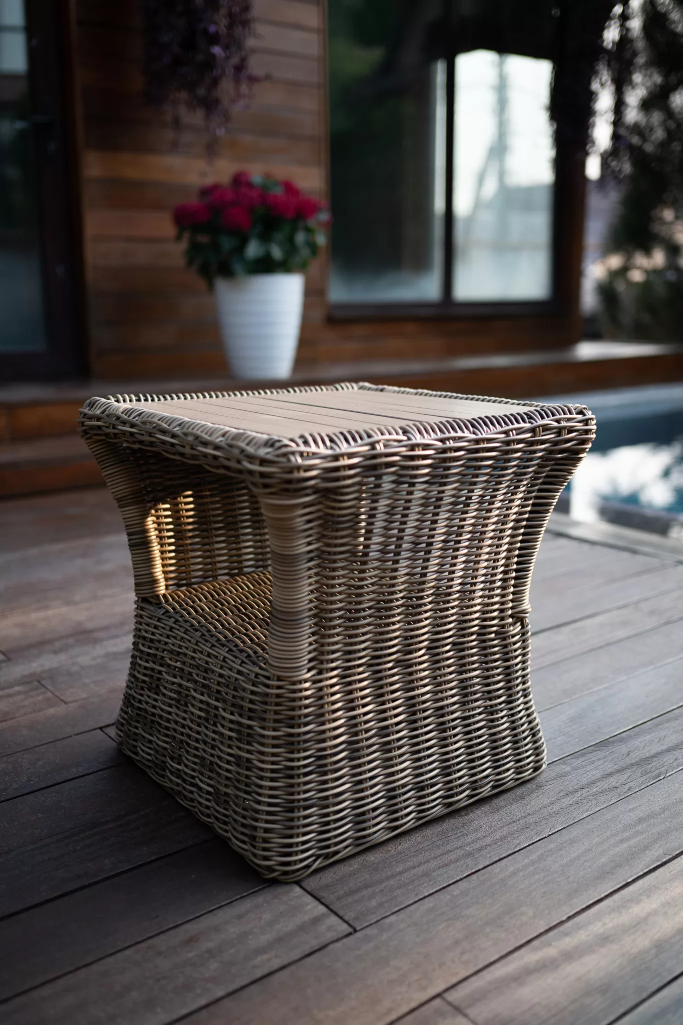 Столик Бордо прекрасно подходит для шезлонгов, на патио и в зону у бассейна. Сделан из качественного искусственного ротанга, внутри столика предусмотрена полочка для разных принадлежностей. Модель столика достаточно миниатюрная и впишется в любое пространство. Ухаживать за ним легко, просто протрите мокрой тряпочкой без средств.